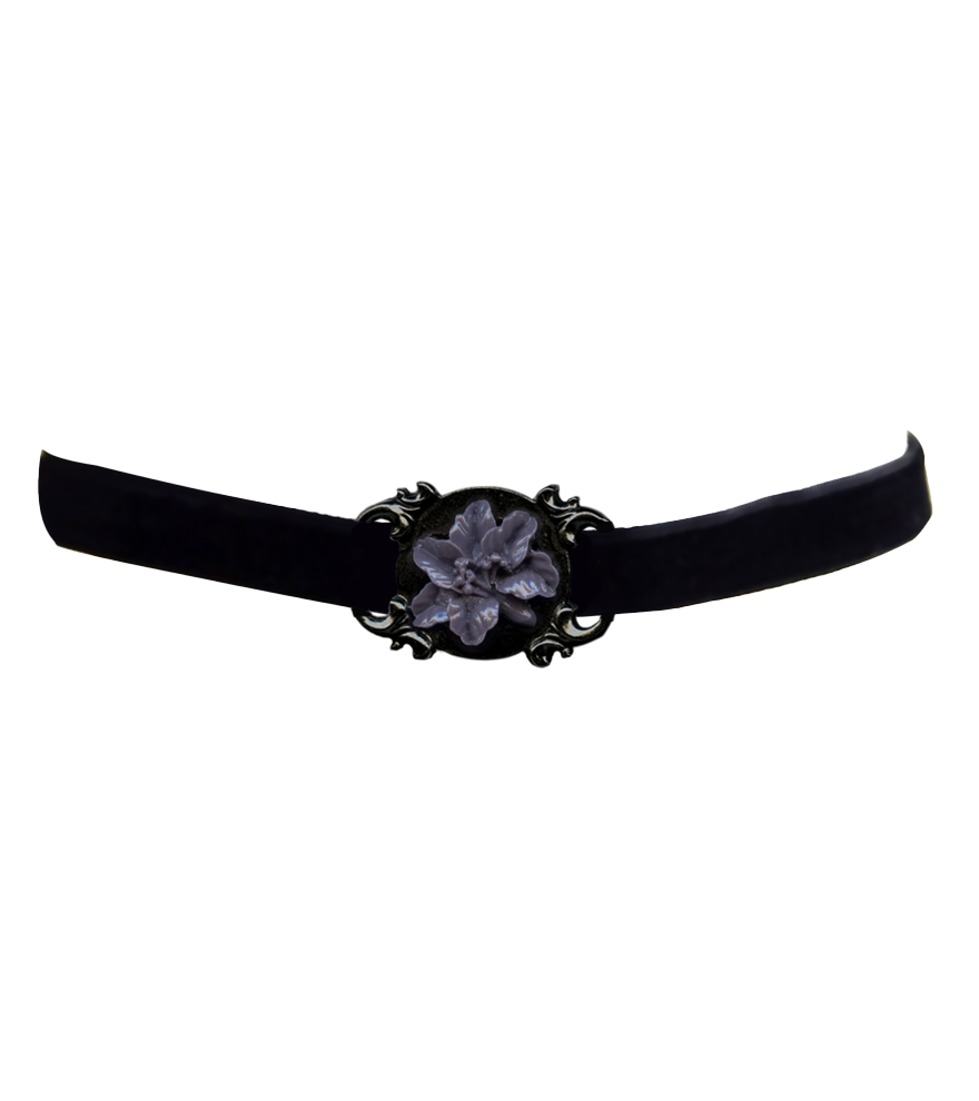 Soft, moody, and timeless — this gray floral velvet choker features a sculpted gray flower centerpiece set against a black velvet band. The neutral tone makes it endlessly wearable while still offering a romantic, gothic-inspired touch.